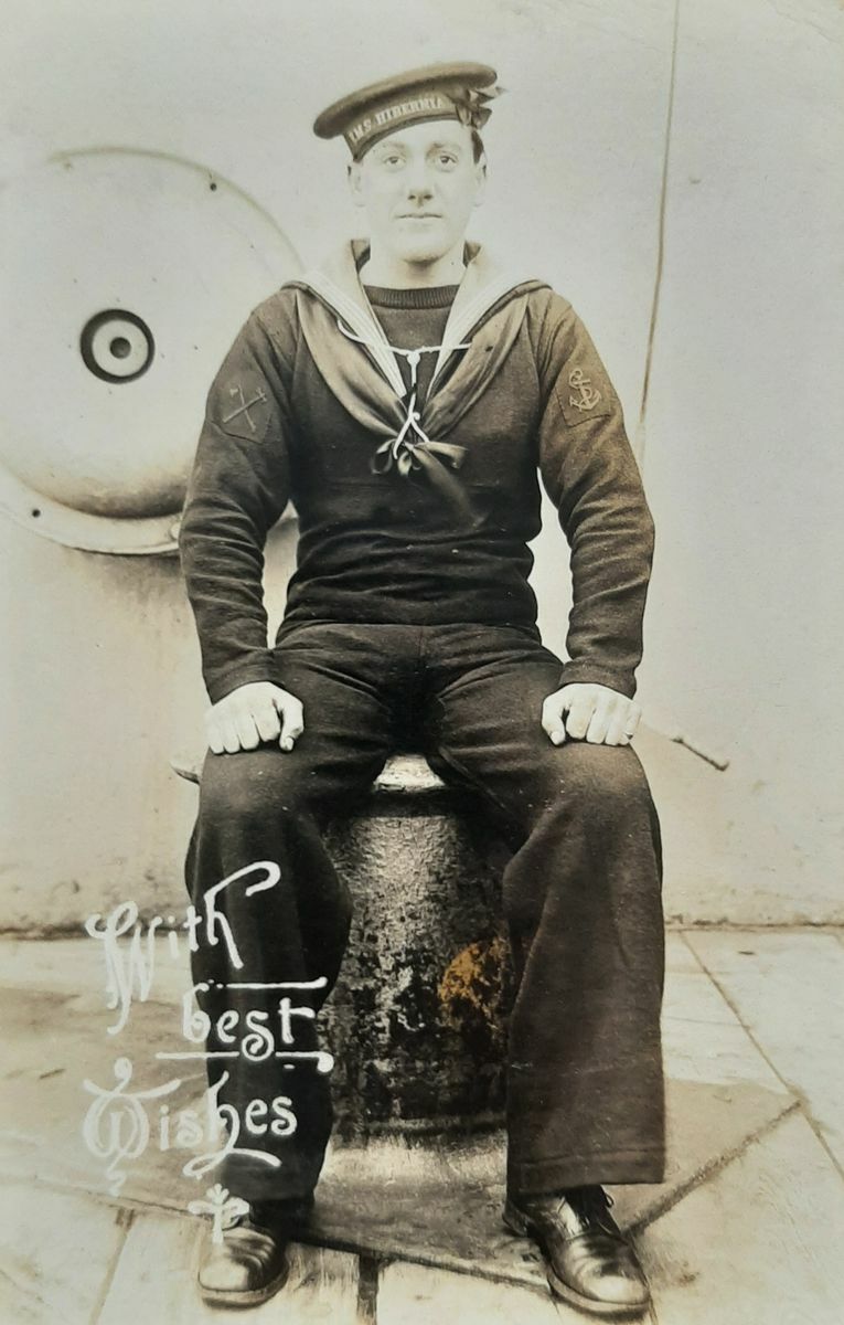 Thomas Young was born at Elizabeth, New Jersey on 12 November 1894 and worked as a painter and decorator prior to joining the Royal Navy as Painter Class III on 16 May 1916. Posted initially to the battleship Hibernia on 15 May 1916 he later joined Brilliant with which he remained until February 1918.