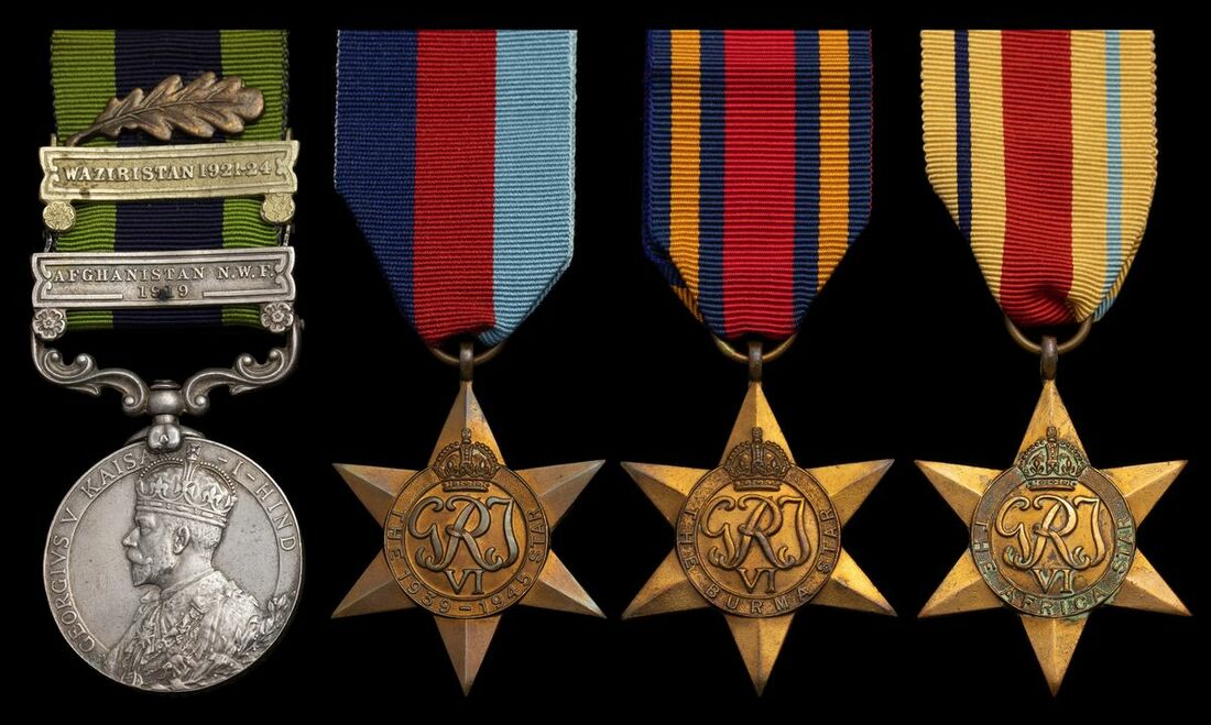 (x) An 'escaper's' group of six awarded to Captain H. W. Sanders, Indian Army Service Corps, who earned a rare 'mention' for Waziristan 1924 only to be taken prisoner of war in Libya during the Second World War before successfully escaping to Switzerland from a camp in Italy