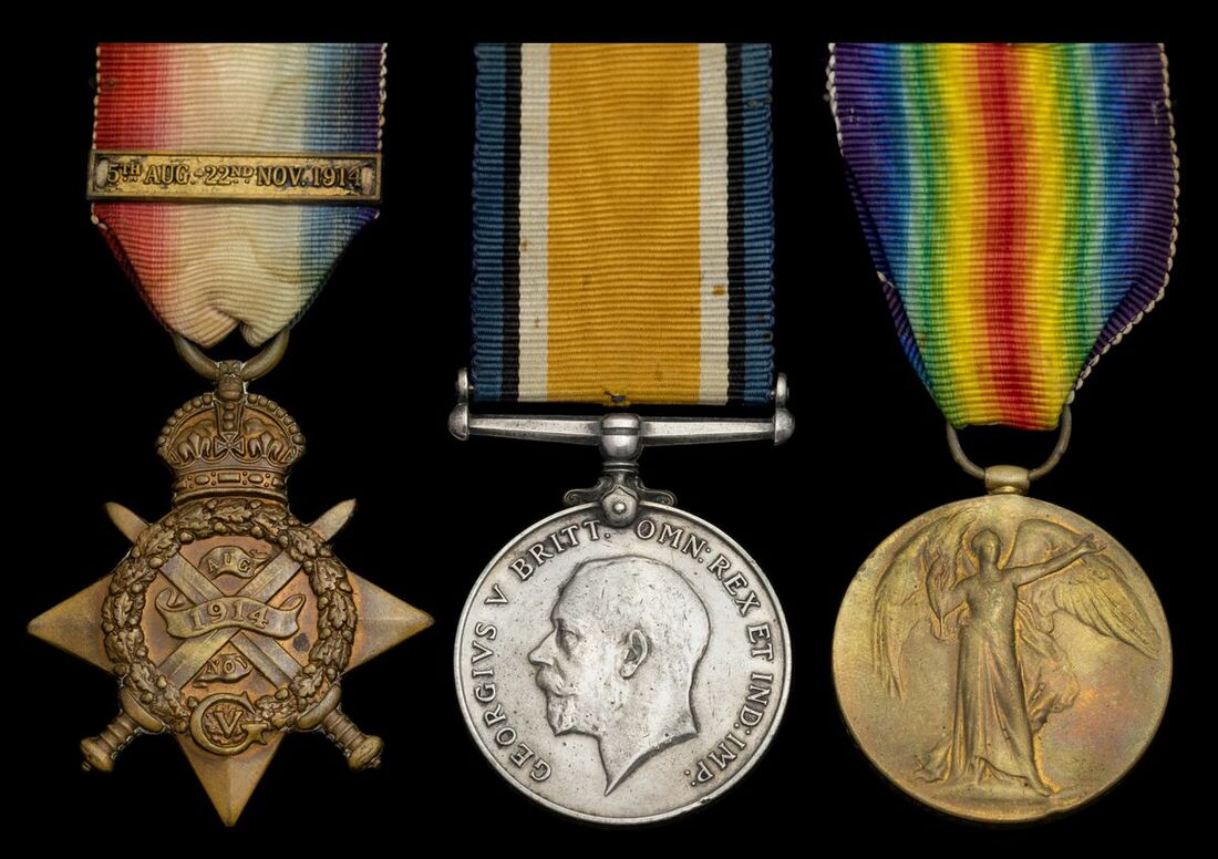 1914 Star, copy clasp (5062 Pte J. Frew. 20/Hrs.); British War and Victory Medals (5062. Pte. J. V. Frew. 20-Hrs.), the first very fine, the latter two polished, edge bruising, nearly very fine (3)