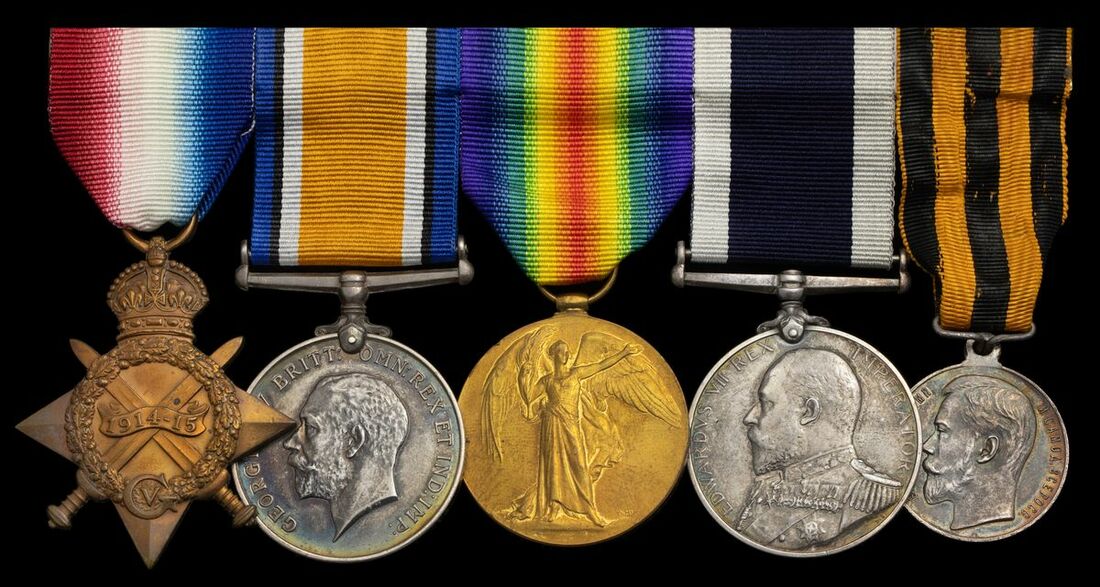 A 'Battle of Jutland 1916' group of five awarded to Armourer's Mate A. W. Eastland, Royal Navy who was awarded the Russian Cross of St. George for his role in the battle Benbow.