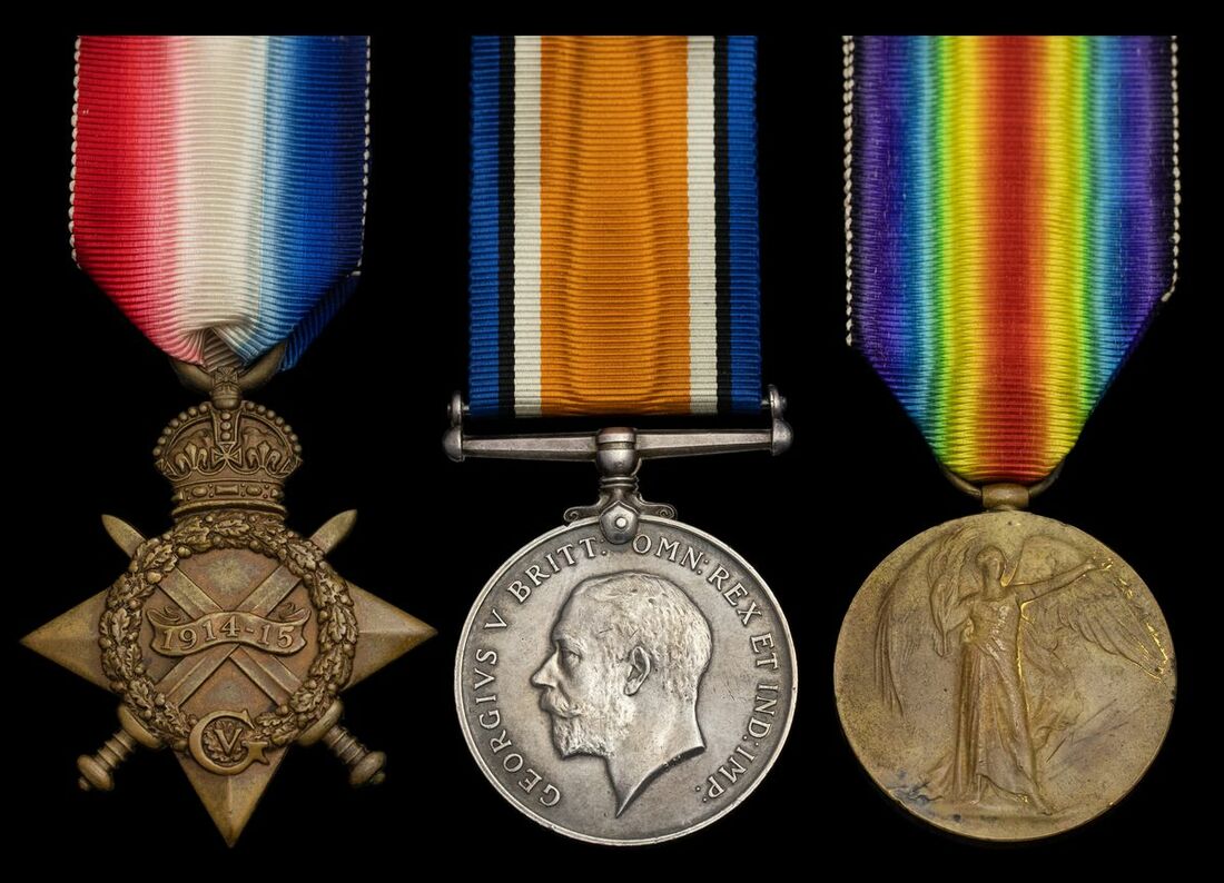 The Great War campaign group of three awarded to Captain G. W. Cross, who was wounded in action at the Battle of Chunuk Bair, Gallipoli