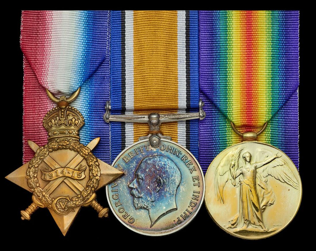 (x) The Great War campaign group of three awarded to Corporal J. McIlroy, Royal Irish Rifles, who was killed in action on 16 June 1915