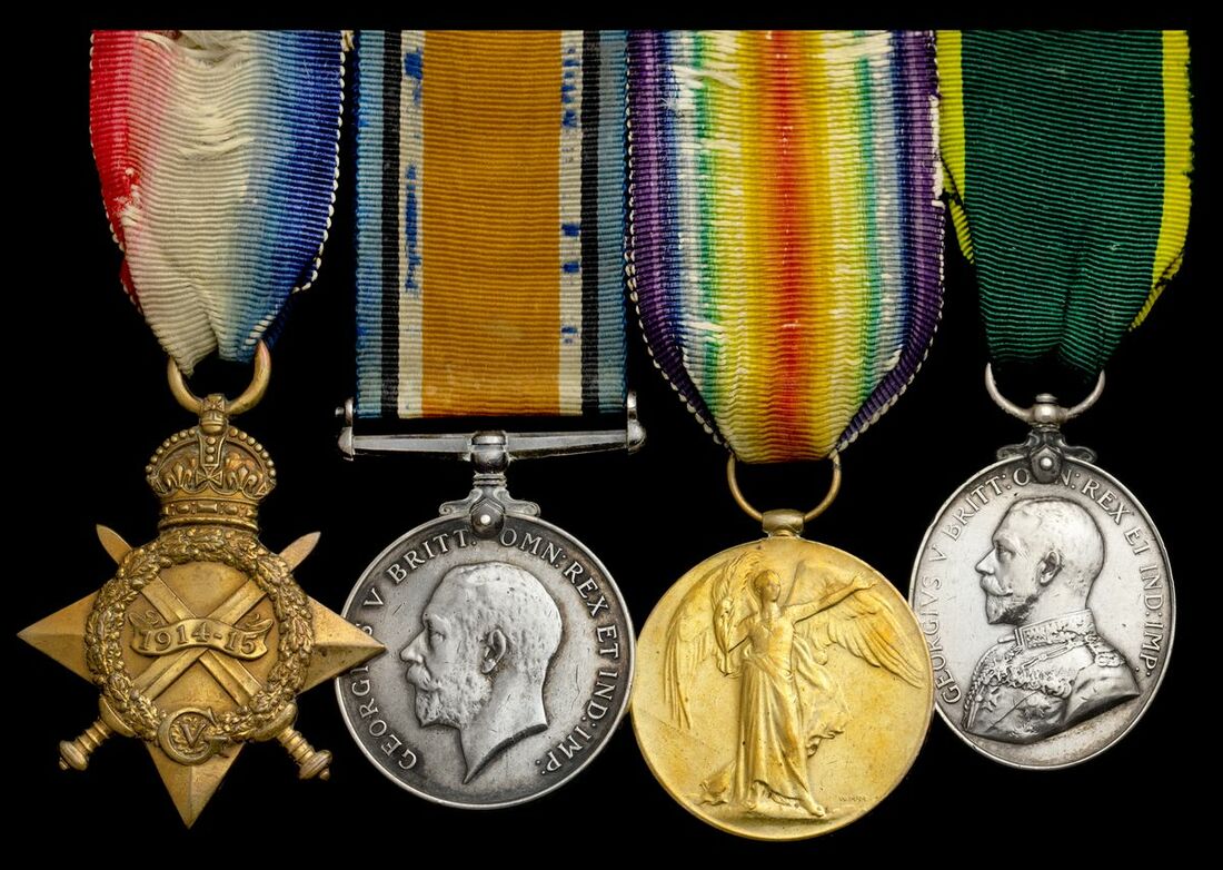 1914-15 Star (2587 Dvr T. B. Goldie. A.S.C.); British War and Victory Medals (2587 Dvr. T. B. Goldie. A.S.C.); Territorial Force Efficiency Medal, G.V.R. (T4-253494 Dvr: T. B. Goldie R.A.S.C,), light contact marks, otherwise very fine (4)