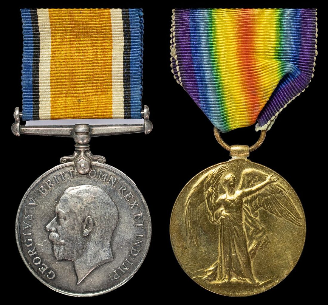 Pair: Private F. J. Rossiter, 2nd Battalion, South Lancashire Regiment, who was shot in the lung and taken prisoner at Armentières in April 1918: initially reported dead, he remarkably survived the war