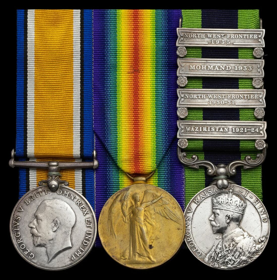 British War and Victory Medals (2901 Pte.Haidar Khan, 130 Baluchis.); India General Service 1908-35, 4 clasps, Waziristan 1921-24, North West Frontier 1930-31, Mohmand 1933, North West Frontier 1935 (3667 L-Nk.Haidar Khan. 5-10 Baluch R.), contact marks, very fine (3)