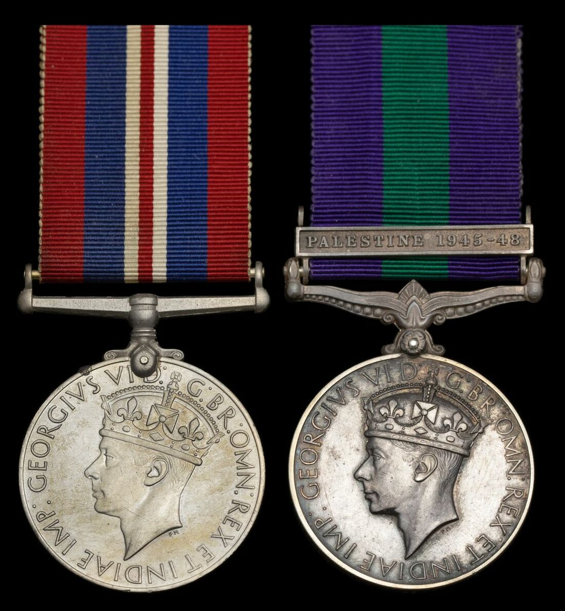 War Medal 1939-45; General Service 1918-62, 1 clasp, Palestine 1945-48 (14114006 Tpr. D. Perry 15 / 19 Hussars.), toned, very fine (2)