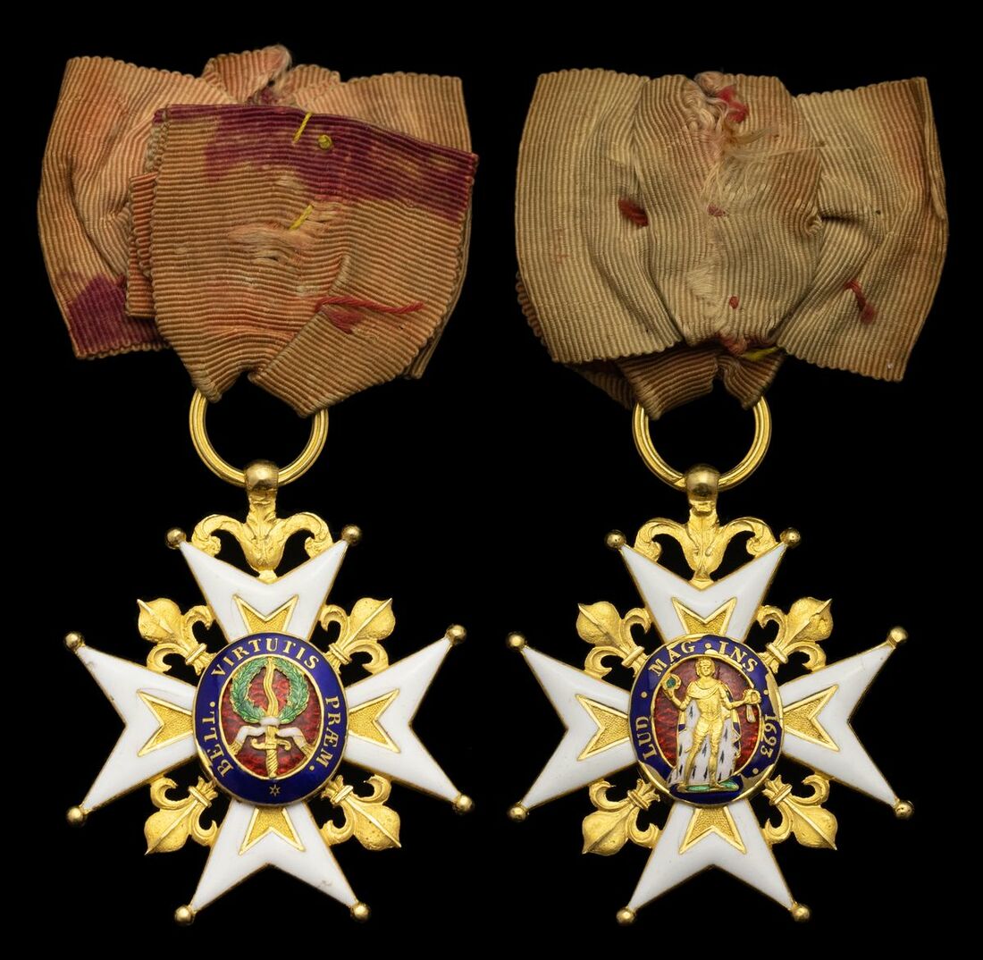 (x) France, Kingdom, Royal and Military Order of St Louis, breast Badge, 38mm, gold and enamel, very fine, mounted as worn on an old bow riband