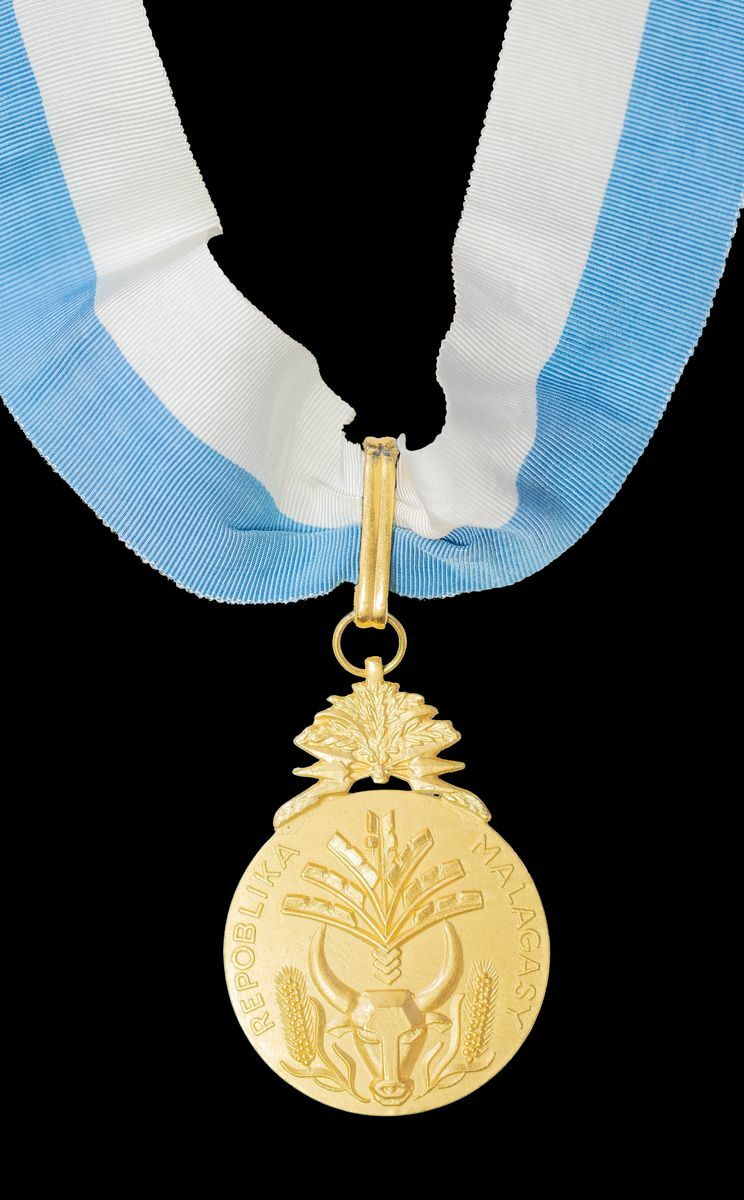 Madagascar (Malagasy), Republic, Order of Merit, neck Badge, 45mm, silver-gilt and enamel, gilt (edge marked 'BRONZE'), good very fine and scarce, with full neck riband