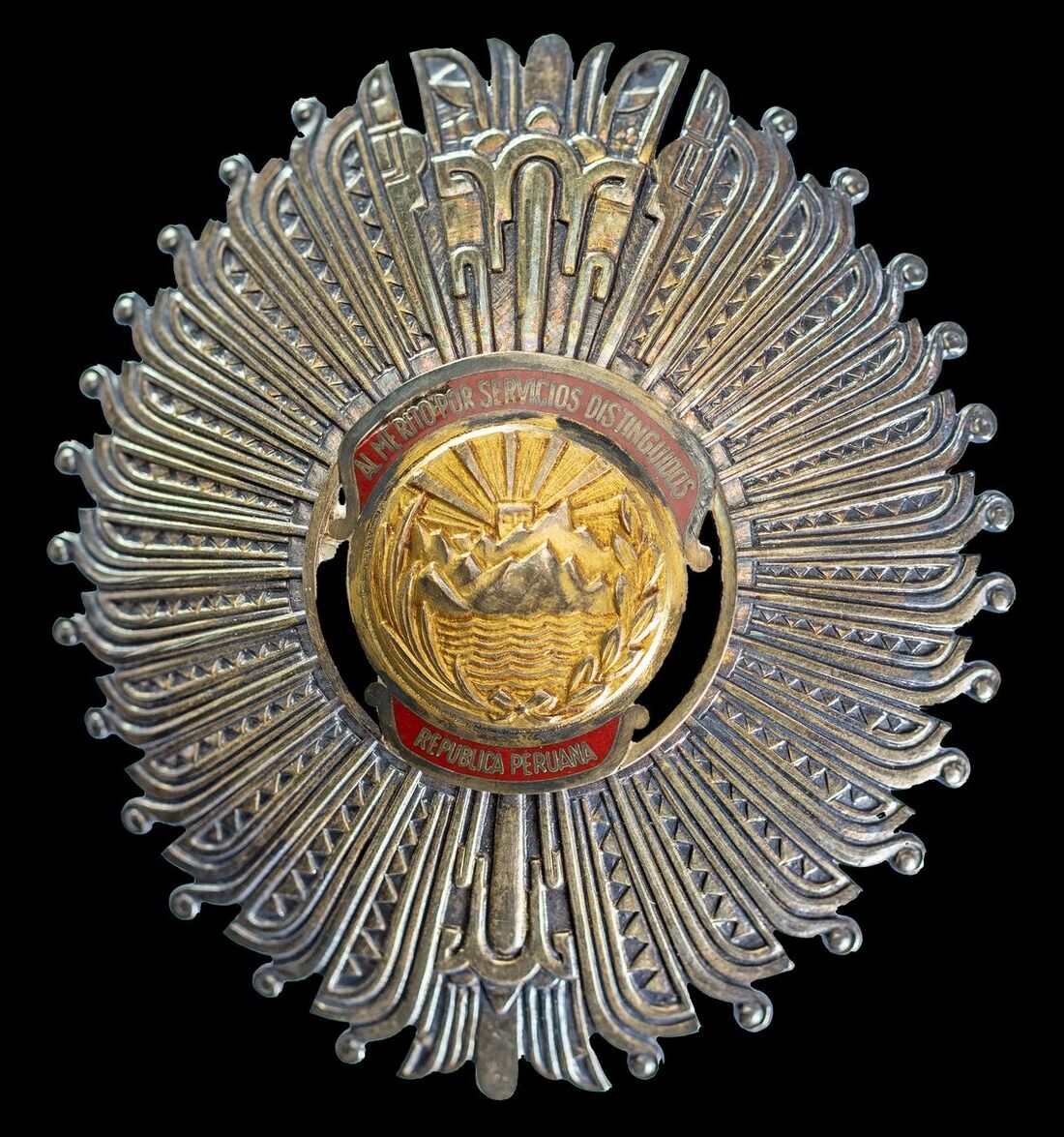Peru, Republic, Order of Distinguished Merit, breast Star, by Casa Moneda, Lima, 71mm, silver, gilt and enamel, maker's cartouche to reverse, good very fine, in fitted case of issue