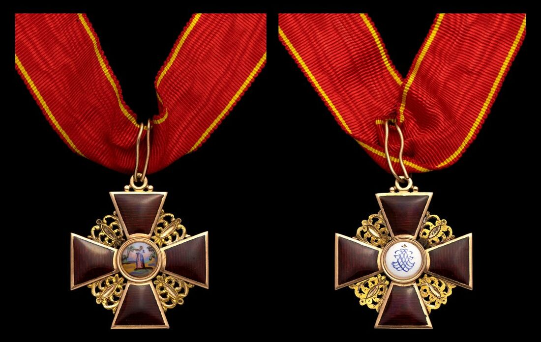 Russia, Imperial, Order of St Anne, Civil Division Badge, 34mm, by Keibel, St Petersburg, gold (56 zolotniki) and enamel, initials 'AK' and marks under enamel, gold marks to loop, very fine
