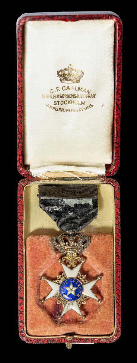 Sweden, Kingdom, Order of the North Star, by C. F. Carlman, Stockholm, breast Badge, silver-gilt, gold centres and enamel, enamel chipping and wear, very fine, in fitted case of issue