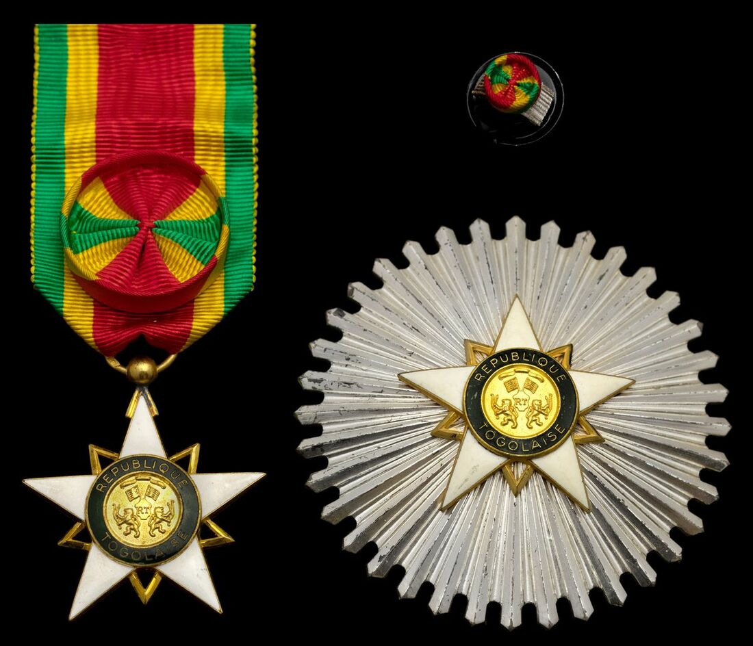 Togo, Republic, Order of Merit, Grand Officer's set of Insignia, comprising breast Badge, 40mm, silver-gilt and enamel, silver mark to loop; breast Star, 72mm, silver, gilt and enamel, silver mark to retaining pin, very fine, with related boutonnière (2)