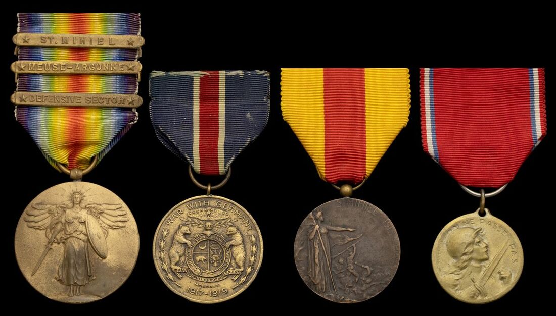 (x) United States of America, Victory Medal, 3 clasps, Defensive Sector, Meuse - Argonne, St. Mihiel; State of Missouri, commemorative Medal for the War with Germany 1917-1919; Medal for St. Mihiel 1918 for the Capture of 13,300 Prisoners of War; Commemorative Medal for Verdun 21 February 1916, very fine (4)