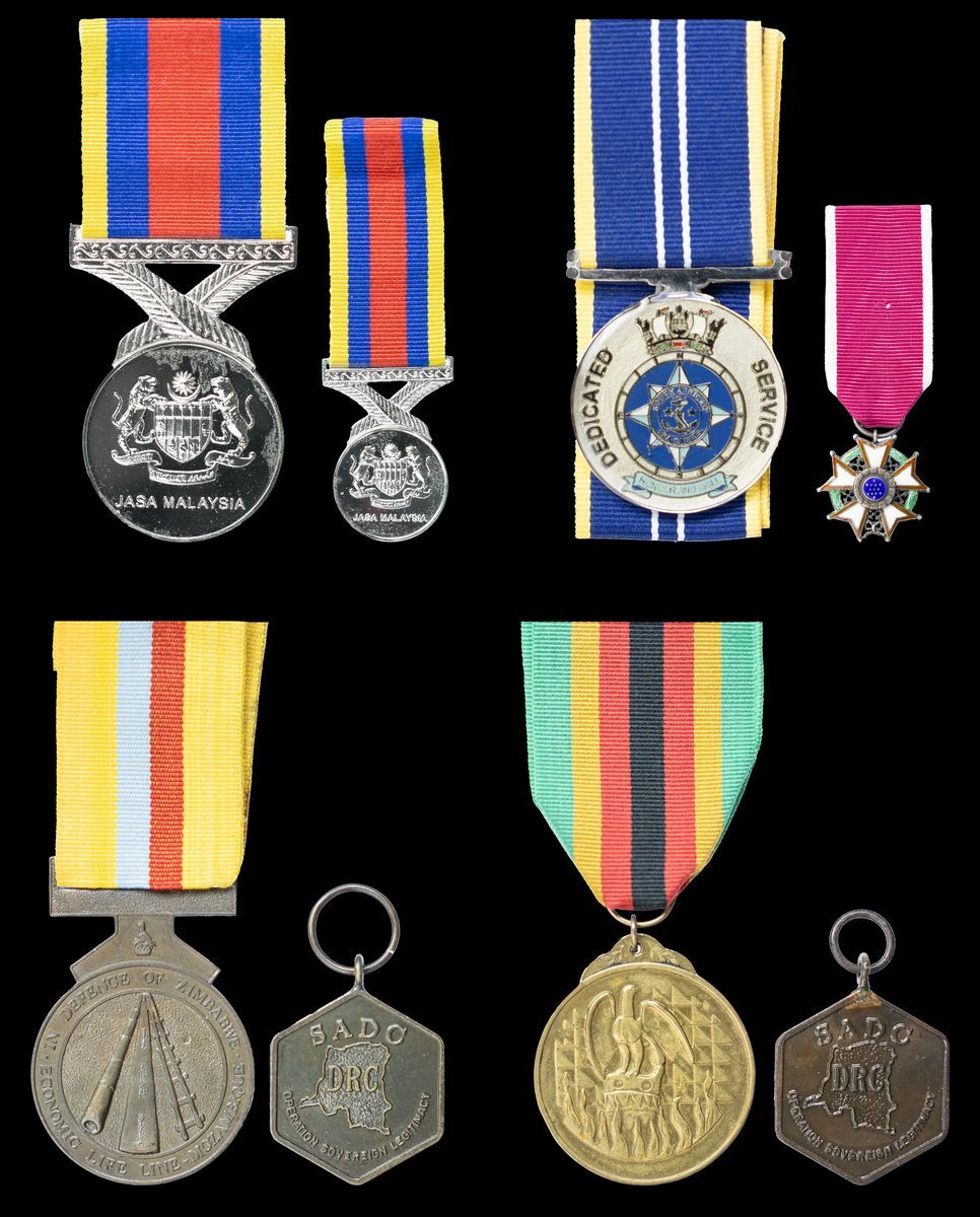 Malaysia, Pingat Jasa Malaysia Medal, in case of issue with miniature; Zimbabwe, Medal for Economic Life Line - Mozambique (674714 Mzenda V.); A.A.D.C. Medal for the Operation Sovereign Legitimacy (674714J WO1 V Mzenda), Zimbabwe Independence Medal numbered '42804'; Medal for the Operation Sovereign Legitimacy, unnamed; United States of America, Legion of Merit, miniature; South Africa Sea Cadets, Dedicated Service Medal, very fine (8)