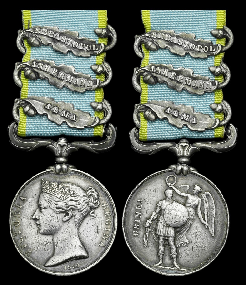Crimea 1854-56, 3 clasps, Alma, Inkermann, Sebastopol (Corporal George Cann Royal Sapp** Miners), privately engraved in thin running script, polished, contact marks, heavy edge wear partially obscures Regiment, about very fine