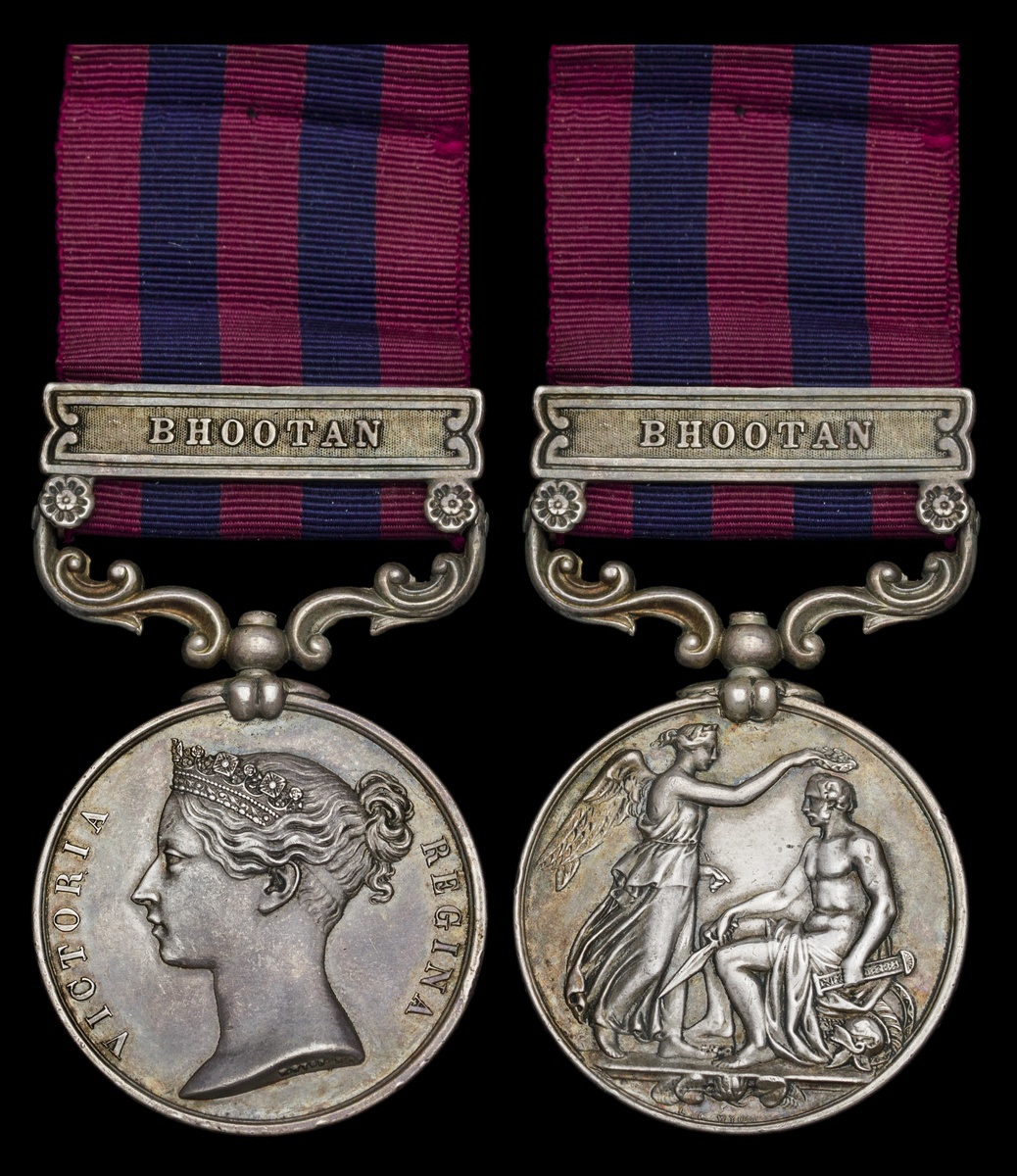 India General Service 1854-95, 1 clasp, Bhootan (925 H Philpott H Ms. 55th Regt.), light edge wear, very fine