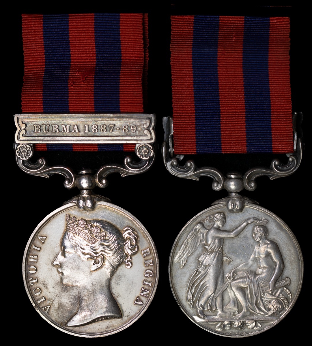 India General Service 1854-95, 1 clasp, Burma 1887-89 (5441 Pte J. L. Bridle, 4th Bn Rifle Bde), pawnbroker's mark, suspension slack, good very fine