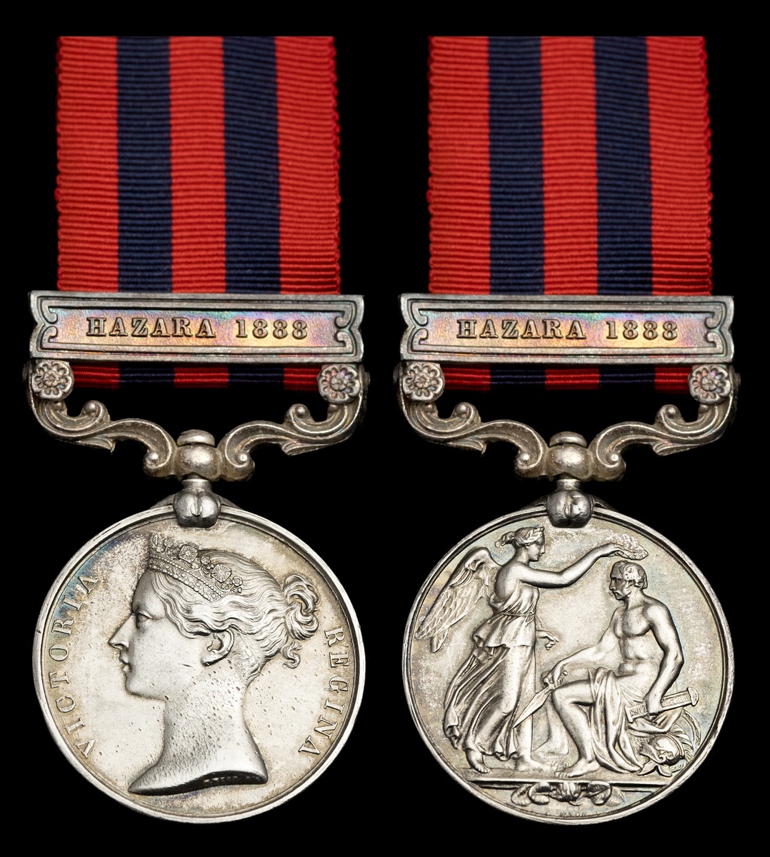 India General Service 1854-95, 1 clasp, Hazara 1888 (3136 Sepoy Sihnu 2nd Sikh Infy), suspension loose, minor pitting, light edge wear, very fine