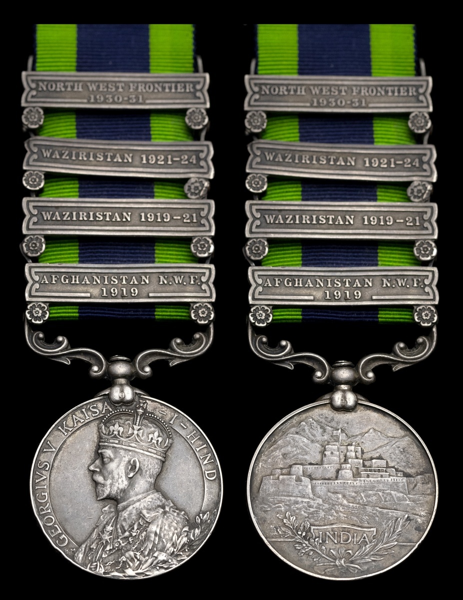 India General Service 1908-1935, 4 clasps, Afghanistan N.W.F. 1919, Waziristan 1919-21, Waziristan 1921-24, North West Frontier 1930-31 (4053 Sepoy Ujagar Singh, 1/46/Pjbis.), light edge bruising, otherwise very fine