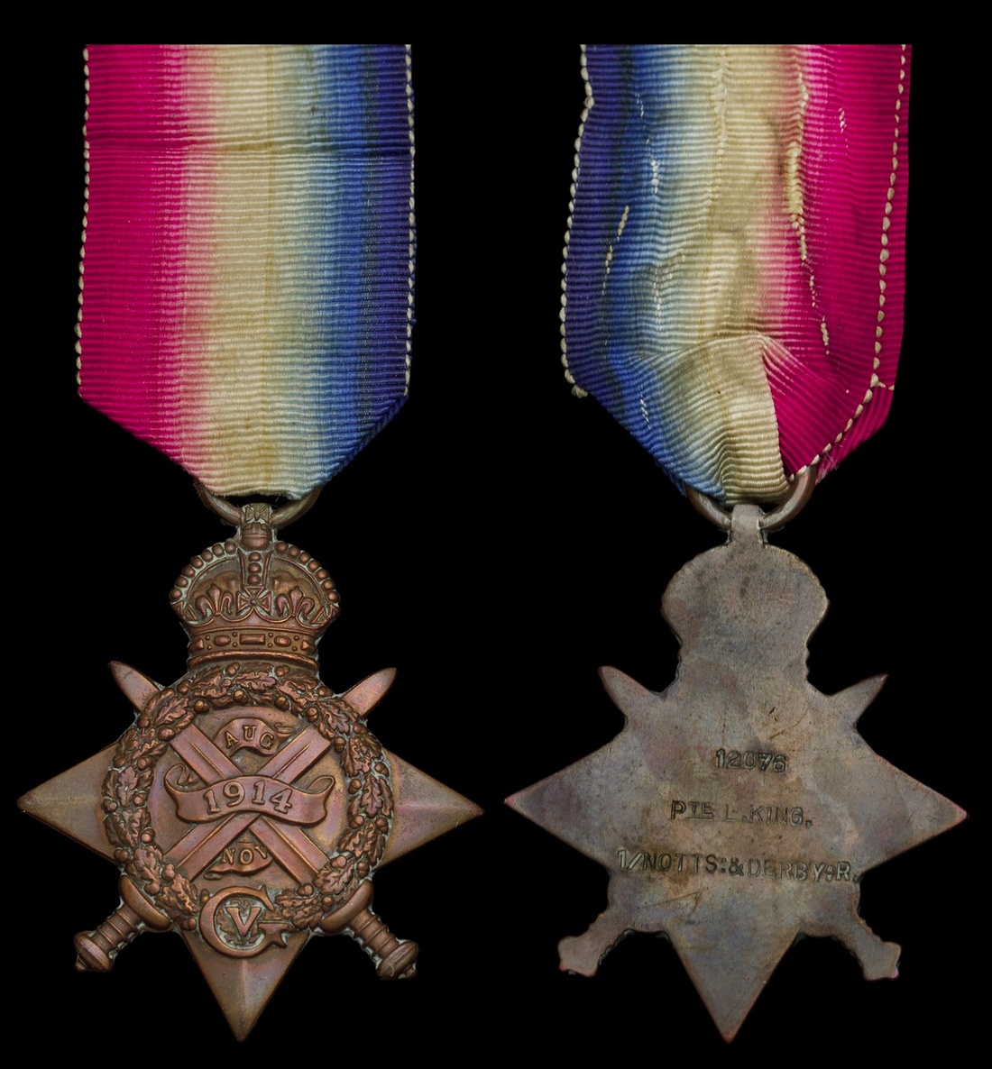 1914 Star (12076 Pte L. King. 1/Notts: & Derby: R.), very fine