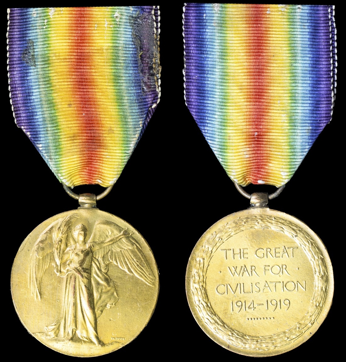 The Victory Medal 1914-19 awarded to Battery Quartermaster Sergeant M. J. Forristal who won the Military Medal in 1918 whilst serving with the Canadian Field Artillery