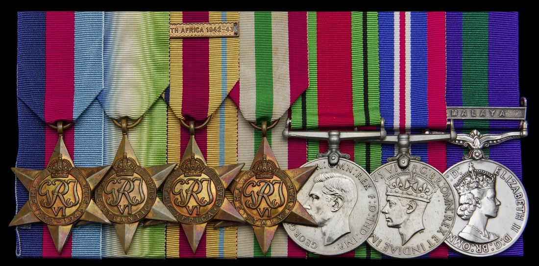 1939-45 Star; Atlantic Star; Africa Star, clasp, North Africa 1942-43; Italy Star; Defence & War Medals 1939-45; General Service 1918-62, 1 clasp, Malaya (Sqn. Ldr. H. L. Lewis. R.A.F.), light contact marks, otherwise very fine (7)