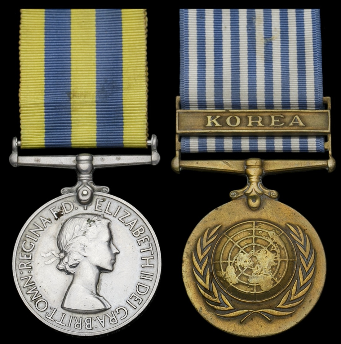 Korea 1950-53 (22590222 Pte. K. Hinde. D.W.R.); U.N. Korea 1950-54, mounted as worn, contact wear overall, very fine (2)
