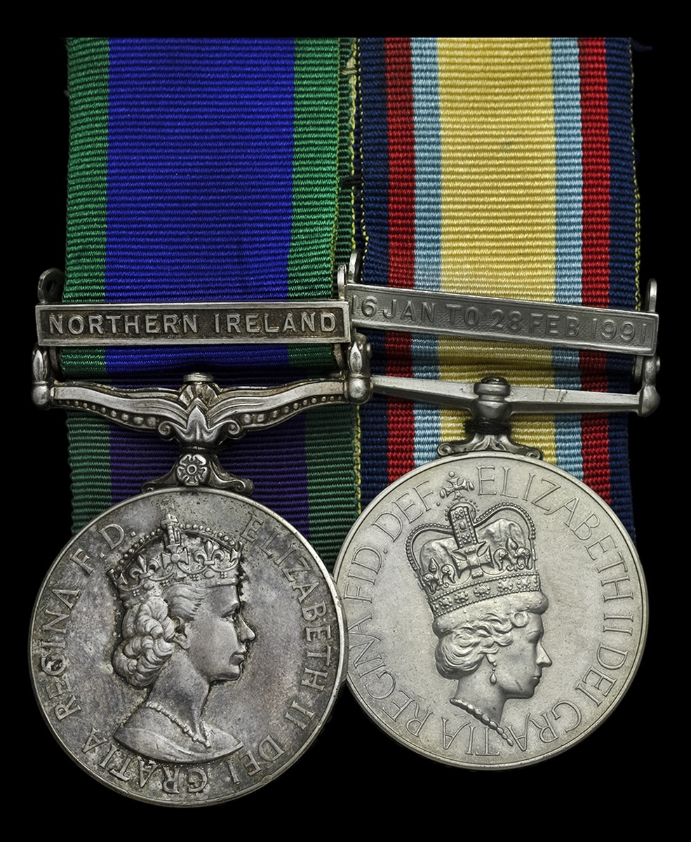 General Service 1962-2007, 1 clasp, Northern Ireland (24815502 Pte S Kabey Q O Hldrs); Gulf Medal, 1 clasp, 16 Jan to 28 Feb 1991 (24815502 Pte S Kabey Q O Hldrs), mounted court-style for wear, good very fine (2)