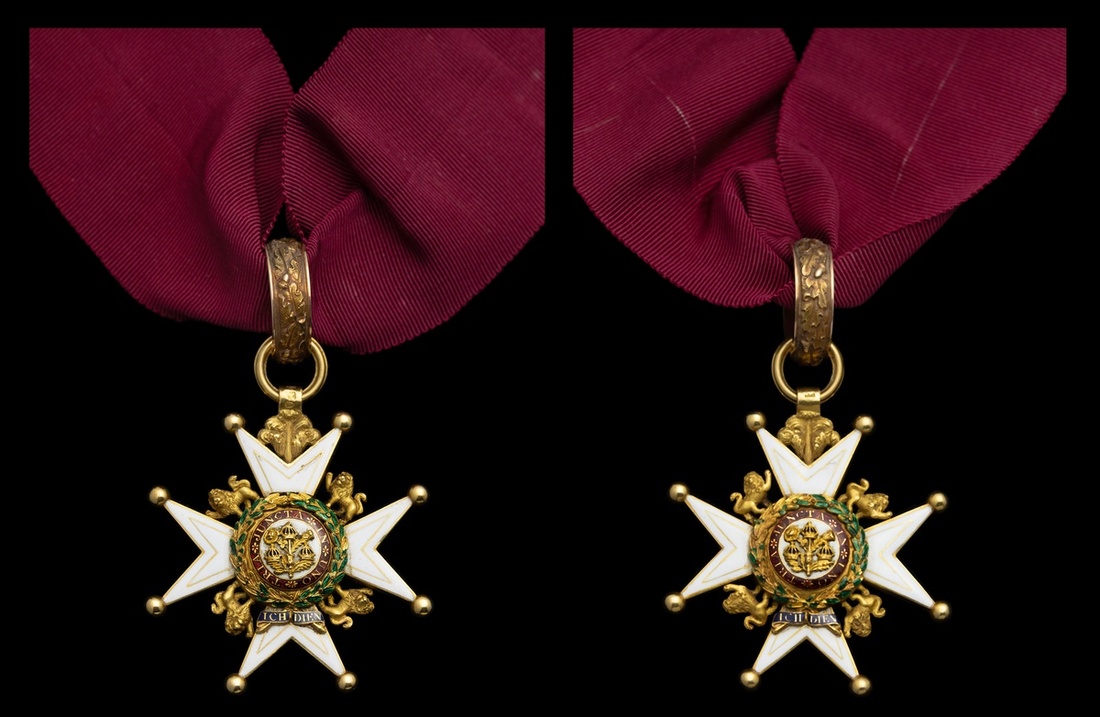 The rare 1814 K.C.B. neck Badge attributed to Captain Sir Thomas Lavie, Royal Navy, who was knighted for his command of H.M.S. Blanche upon the occasion when she captured the French frigate Guerriere off the Faroe Islands in July 1806