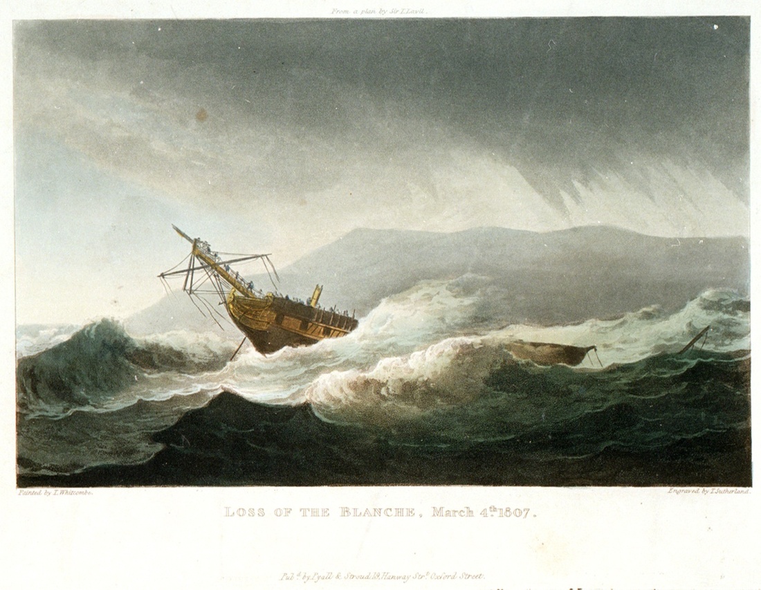 Lavie (now Sir Thomas) continued in command of Blanche and saw further active service (capturing the George Washington in January 1807), but on 4 March 1807 disaster struck: whilst en-route from Spithead to Brest to join Sir James Saumarez's blockading squadron, Blanche hit a submerged reef during a storm and swiftly began to break up. Thankfully Lavie and most of the crew survived, but were taken prisoner and spent the remainder of the Napoleonic Wars (some seven years) in French gaols.
