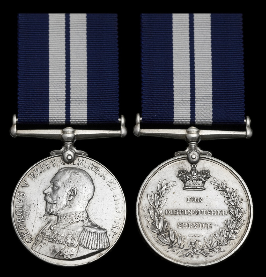 A very fine 'Harwich Force 1917' D.S.M. awarded to Chief Petty Officer E. E. Sandell, Royal Navy, who was present with Lennox during the action off Texel and later was with Sharpshooter during the Bombardment of Ostend where she sank S20, likely the action for which he was decorated before being further 'mentioned' in 1917
