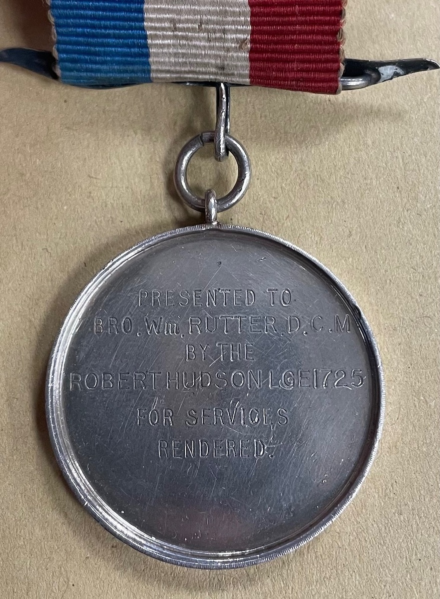 Distinguished Conduct Medal, G.V.R. (13021 C.S.Mjr. W. Rutter. 6/York: R.); Royal Antediluvian Order of Buffaloes Great War Service Medal, silver, the reverse engraved 'Presented to Bro. Wm. Rutter DCM by the Robert Hudson Lge1725 For Services Rendered', good very fine (2)