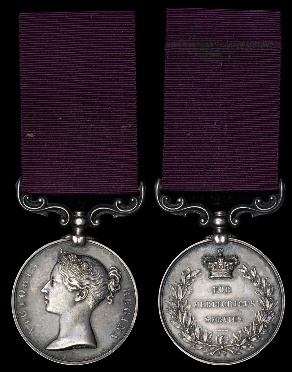 His papers note that he served 6 years and 11 months in the Australian Colonies and was originally entitled to the Army Long Service and Good Conduct medal which was exchanged for the Meritorious Service Medal offered here.
