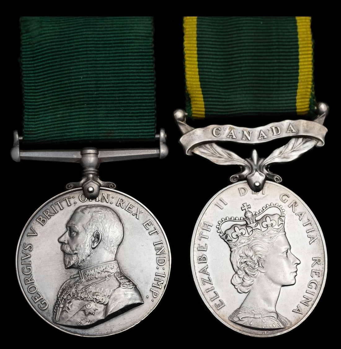 Volunteer Force Long Service (India & The Colonies), G.V.R. (C.S.M. (W.O.Cl.2) N. Crossley. Winn. L.I.), officially re-impressed naming; Efficiency Medal, Canada, E.II.R. (Sgt. N. J. W. Crossley), both mounted as worn, very fine (2)