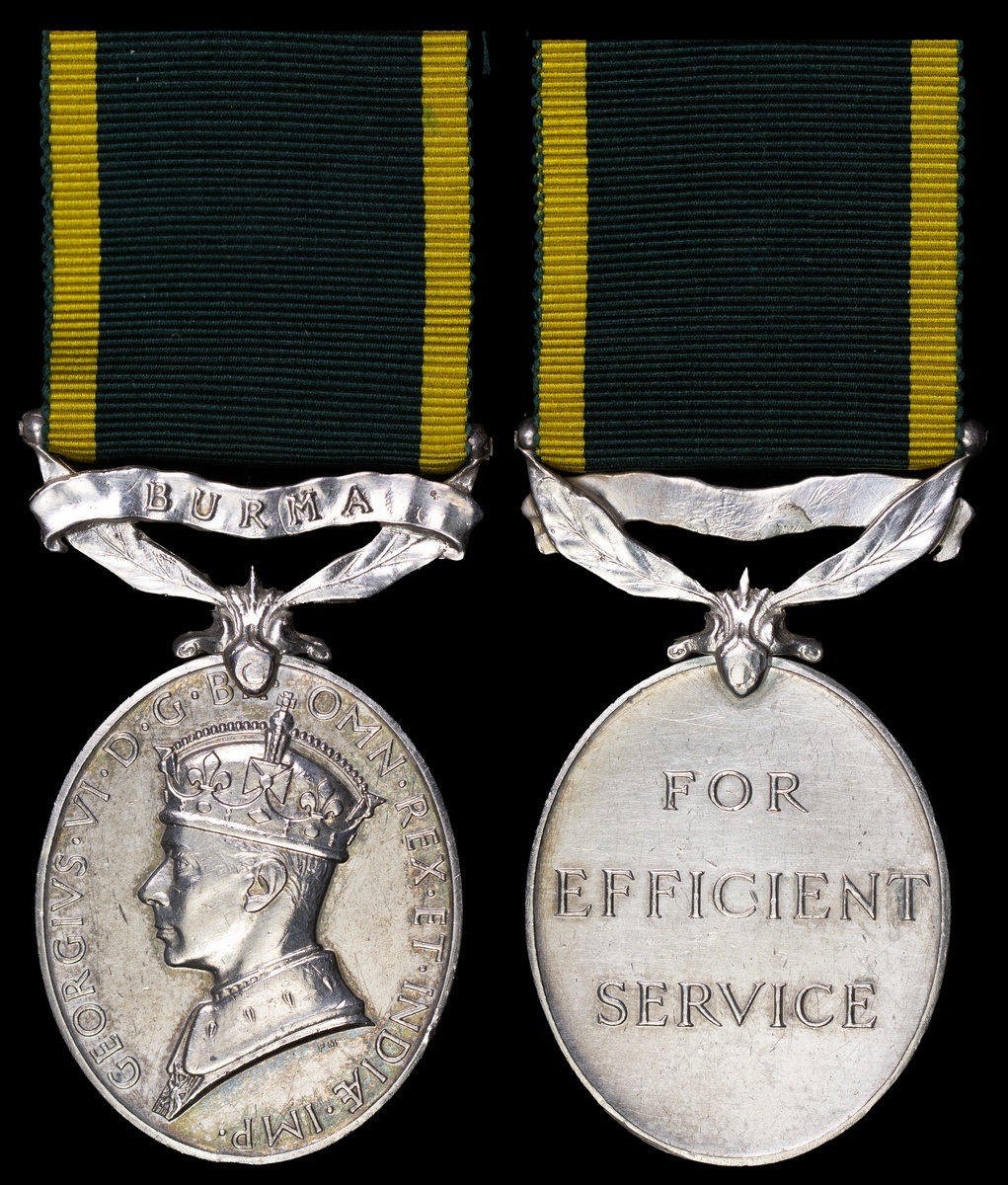 (x) Efficiency Medal, G.VI.R., Burma, naming erased, contact marks and edge bruising, very fine