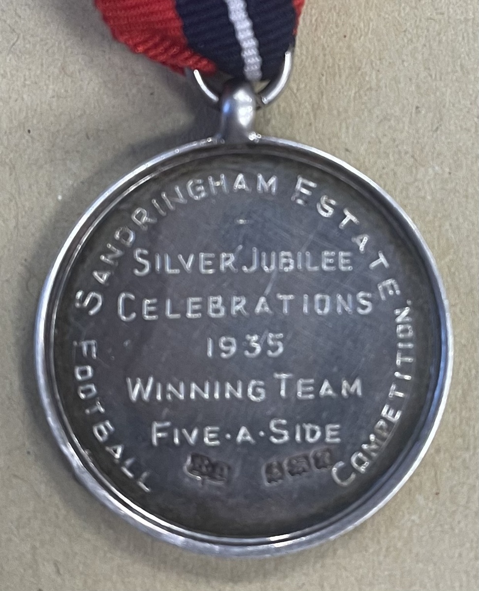 Royal Household Faithful Service Medal, G.VI.R., the suspension dated '1919-1939' (Larrington, Walter Francis.), in its Royal Mint case of issue; Jubilee 1935, in its case of issue; Sandringham Estate Silver Jubilee Celebrations 1935 Football Competition Winner's Medal, silver; Holland County Lincolnshire, School Attendance Medals for 4 & 5 Years, silver, good very fine (5)