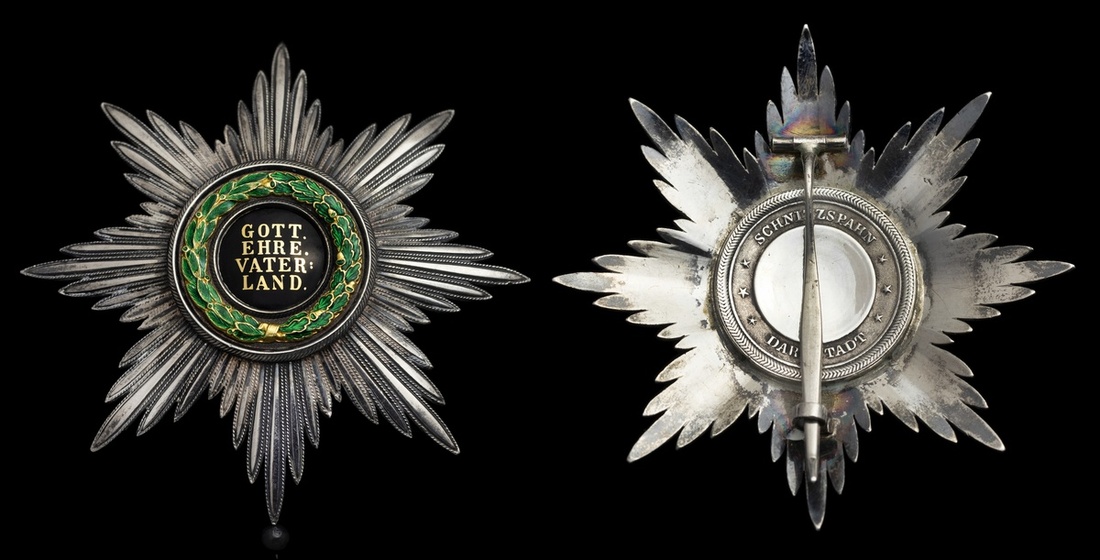 (x) Germany, Hesse-Darmstadt, Order of Ludwig, Grand Cross breast Star, by Schnitzspahn, Darmstadt, 84mm, silver, silver-gilt and enamel, maker's cartouche to reverse, good very fine