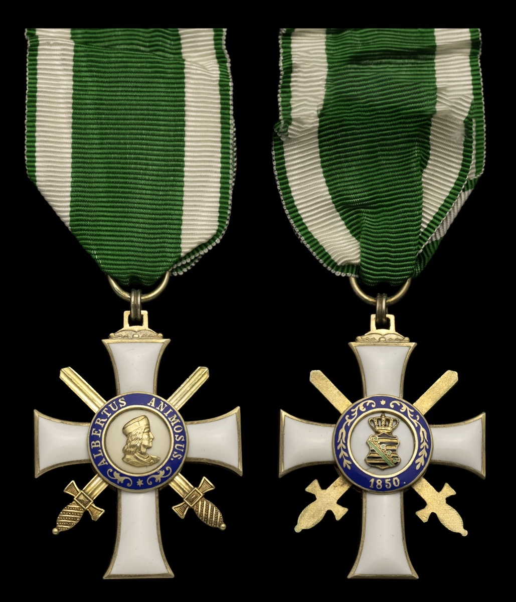 Germany, Saxony, Order of Albert, Military Division 2nd Class Knight's breast Badge, 2nd Type, 49mm x 34mm, silvered and enamel, one minor chip to centre enamel on reverse, otherwise very fine