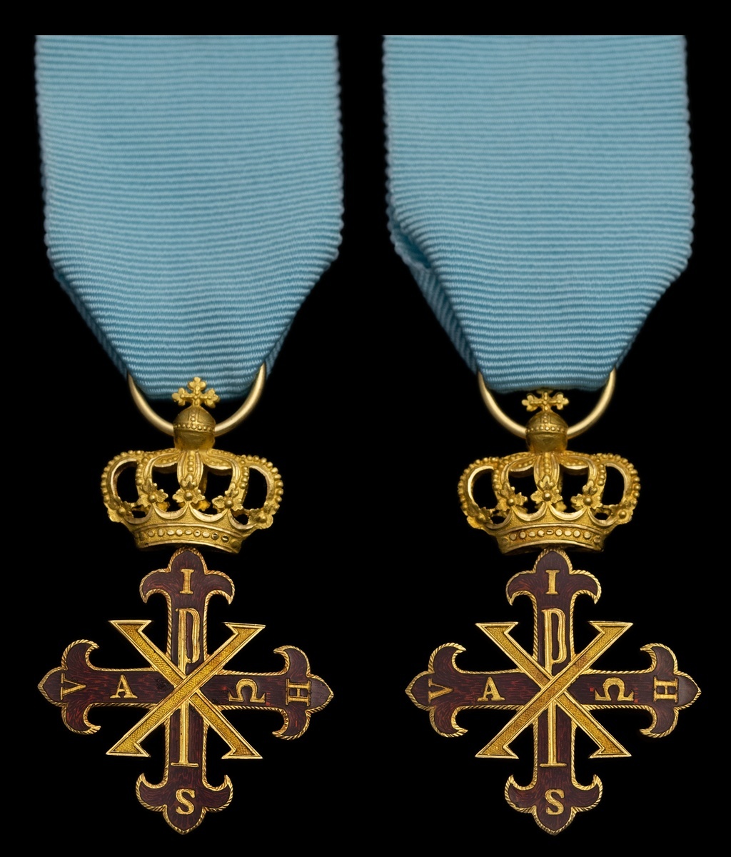 (x) Italy, Sacred Military Constantinian Order of St. George, breast Badge, 49mm including crown suspension x 31mm, gold and enamel, good very fine and a Badge of good quality and heft