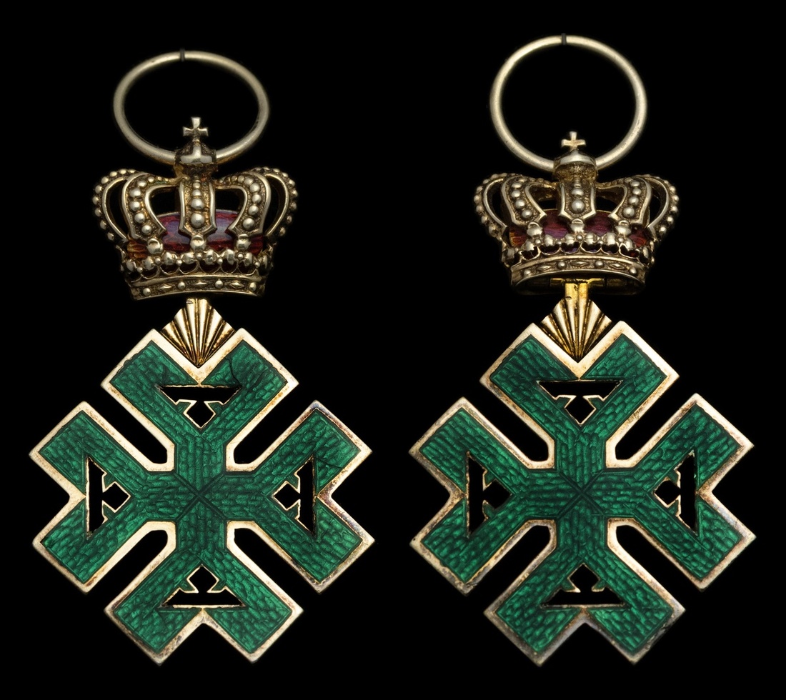 (x) Romania, Kingdom, Order of Ferdinand I, breast Badge, 50mm including crown suspension x 31mm, silver-gilt and enamel, good very fine and rare