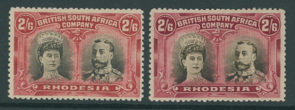 2/6d. black and lake and 2/6d. sepia and deep crimson, both well-centred examples and with rich colours, large part original gum; fine. S.G. 155, 156, £725