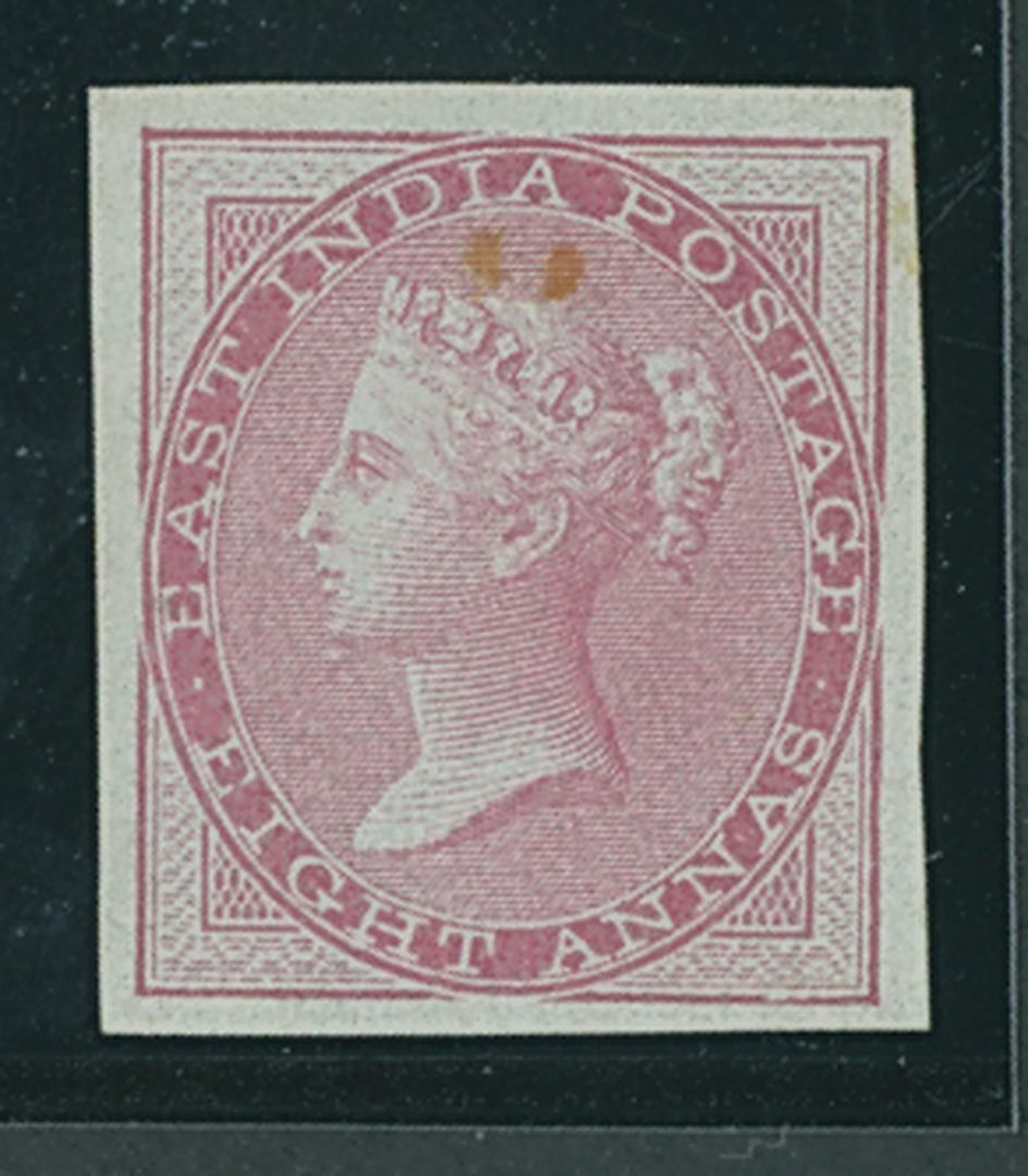 1855 blue glazed paper, 8a. carmine, variety imperforate, unused with large part original gum, small stains at top though rare. S.G. 36a var (£9,500 for a pair). B.P.A. Certificate (2023). Photo