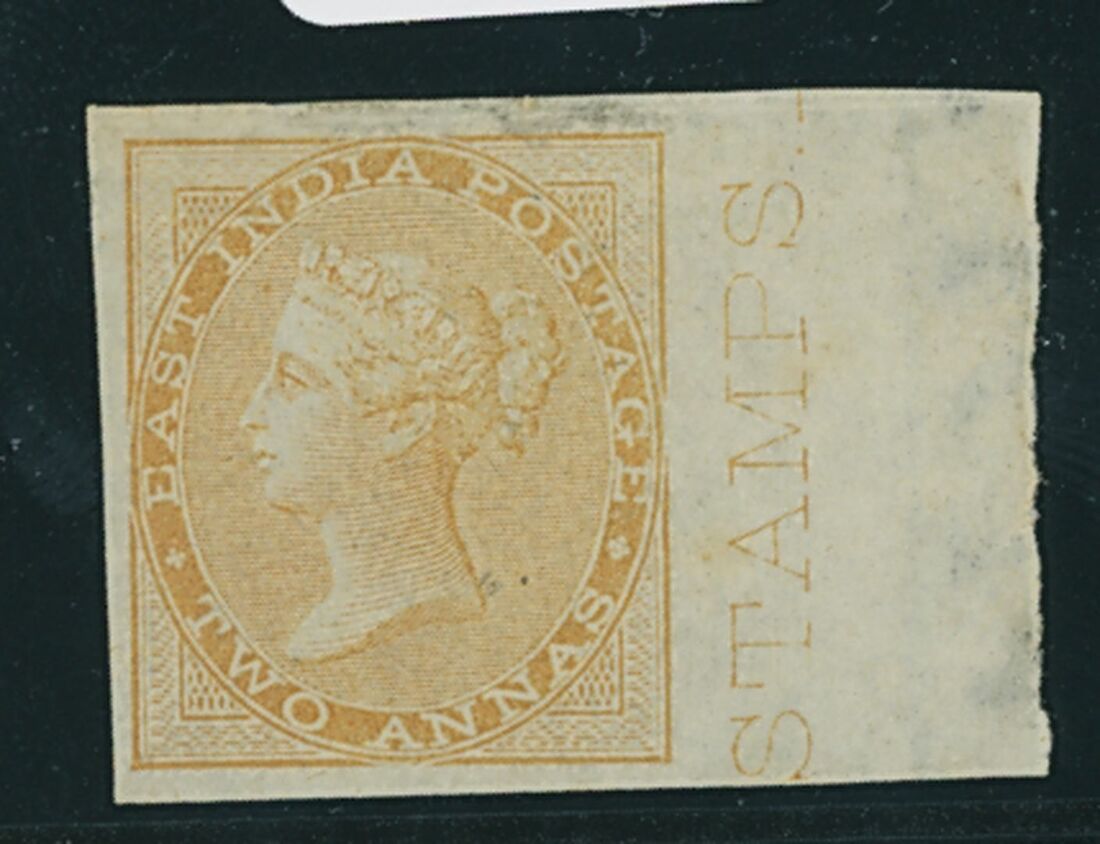 1856-64 2a. yellow-buff with margin at right, variety imperforate, traces of gum, horizontal crease and small water stain at top. Rare. B.P.A. Certificate (2023). S.G. 42a (£3,750 as a pair). Photo