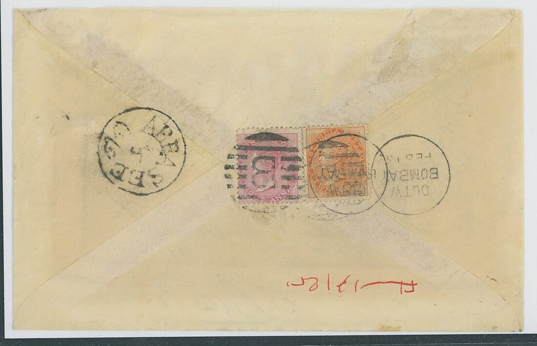 1869 (16 Feb.) envelope from Bombay addressed to Yezd, Persia franked with 2a. and 8a. cancelled by Bombay duplex obliterator, envelope marked Via Bushire but in reality went through Bander Abbas and showing