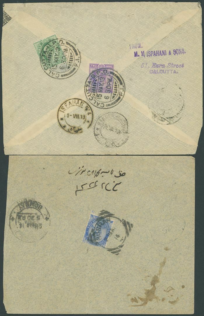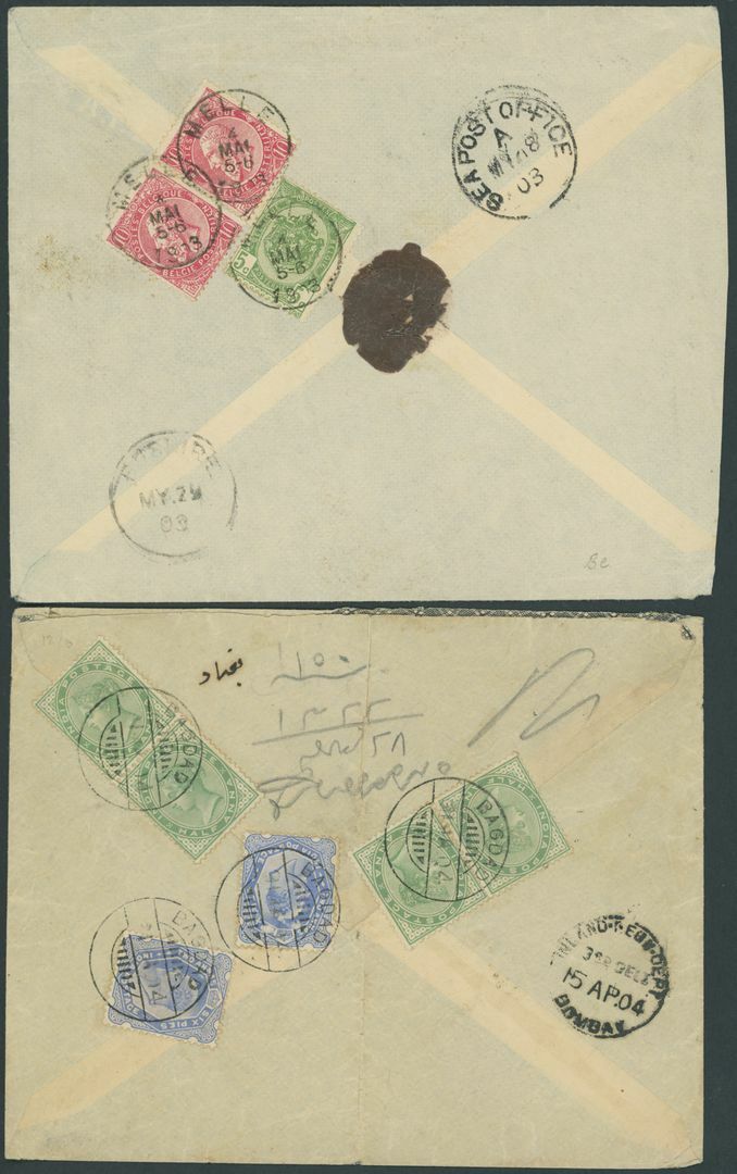 1903-20 a postal history selection (10) comprising incoming and outgoing mails including 1903 incoming mail from Belgium to Bushire via Bombay, 1904 envelope registered from Baghdad to Bombay franked on the reverse with India QV ½a. (4) and KEVII 2a.6p. (2), 1911 envelope from Bushire to Bombay, 1914 envelope from Basra to Bombay. Usual mixed condition, an enjoyable lot for the expert of the area.