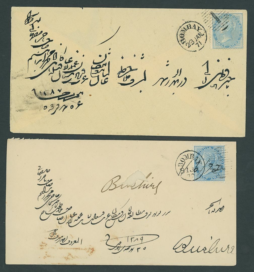 1868-71 incoming mail from India selection (5), four of them showing on the reverse