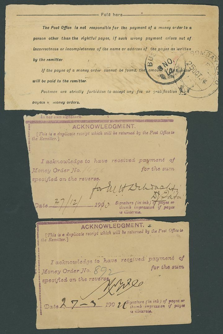 1910-14 a selection of three acknowledgement receipts showing datestamps and boxed