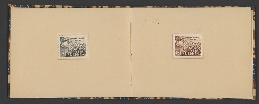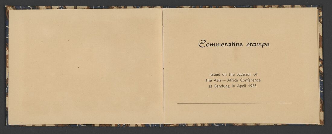 1955 Asian-African conference Bandung Souvenir folder issued by the Administration of Posts containing the four commemorative stamps issued for the conference and hinged to pages. Fine and scarce.