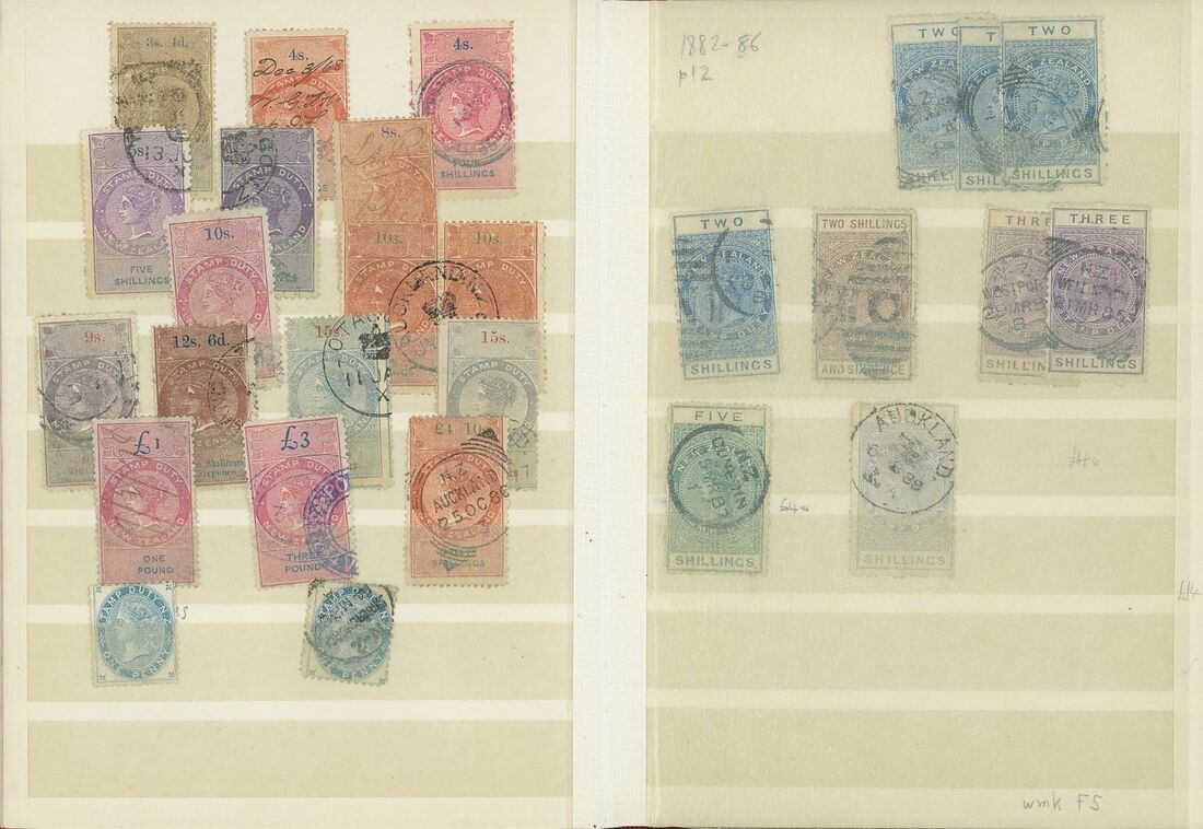 Stamp Duty and Postal Fiscals mainly used collection arranged in a small stockbook including values up to £10, a mix of fiscally and postally used in mixed condition. Viewing advised.