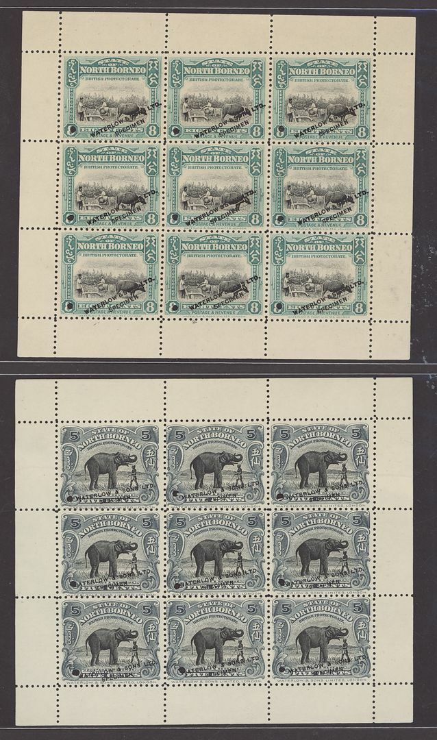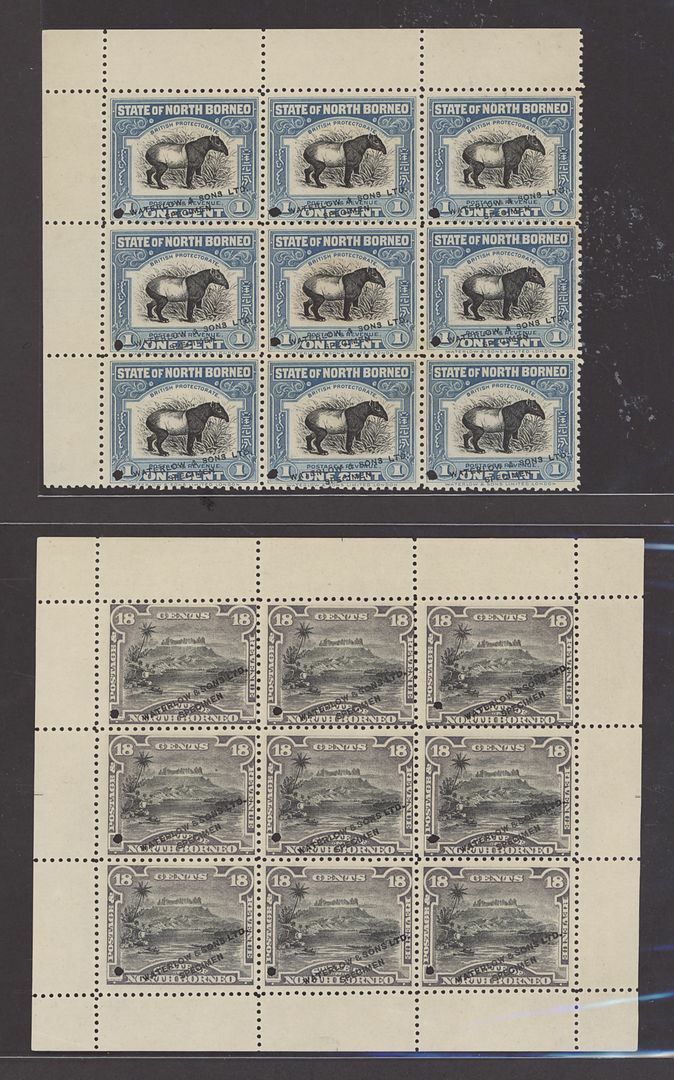 1897-1923 perforated printer's samples including 1c., 5c., 8c. and 18c. perforated sheets of nine, all overprinted